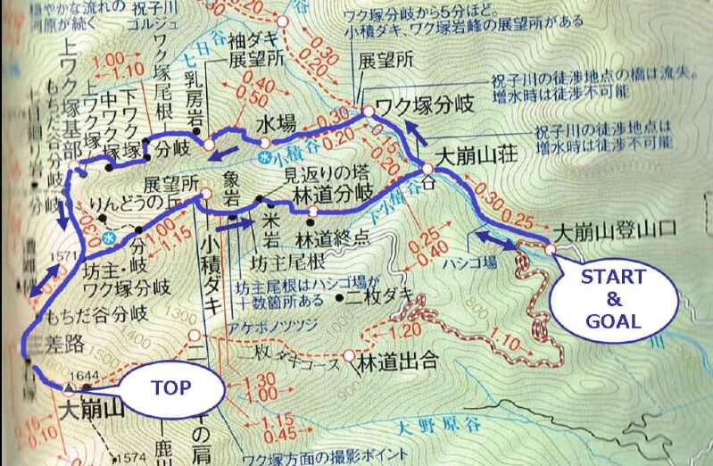 このコースには、途中、坊主尾根という(3つのピークあるため三つ坊主ともいう)上級者向きのコースがあるのですが、そのコースは難しいのかなと考えて、水場コースを下っていきました。でも、この水場コースも水場から三ツ坊主の登り分岐までの間は、滑りやすい岩場のトラバース箇所があったり、また、何度もアップダウンを繰り返さなければならなかったので、下りなのにとても大変な思いをしました。