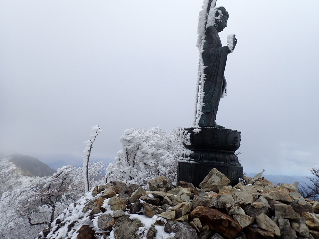 ピークへ着くとお釈迦様の背中に雪の羽が生えていた。