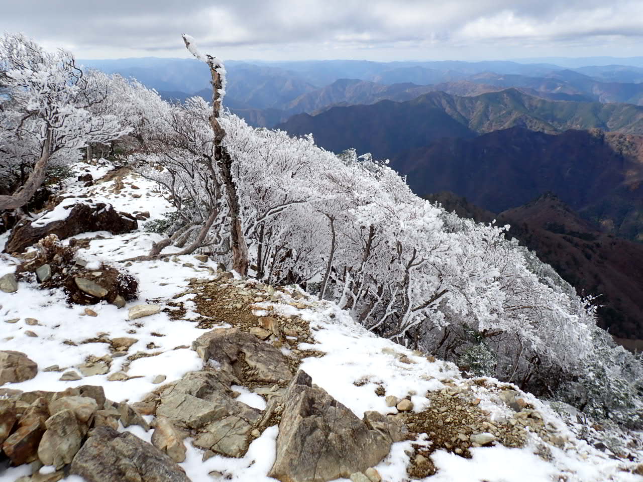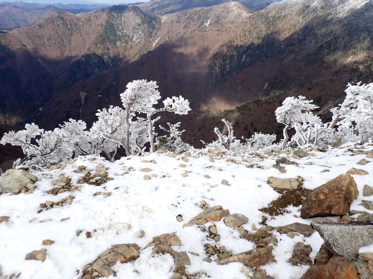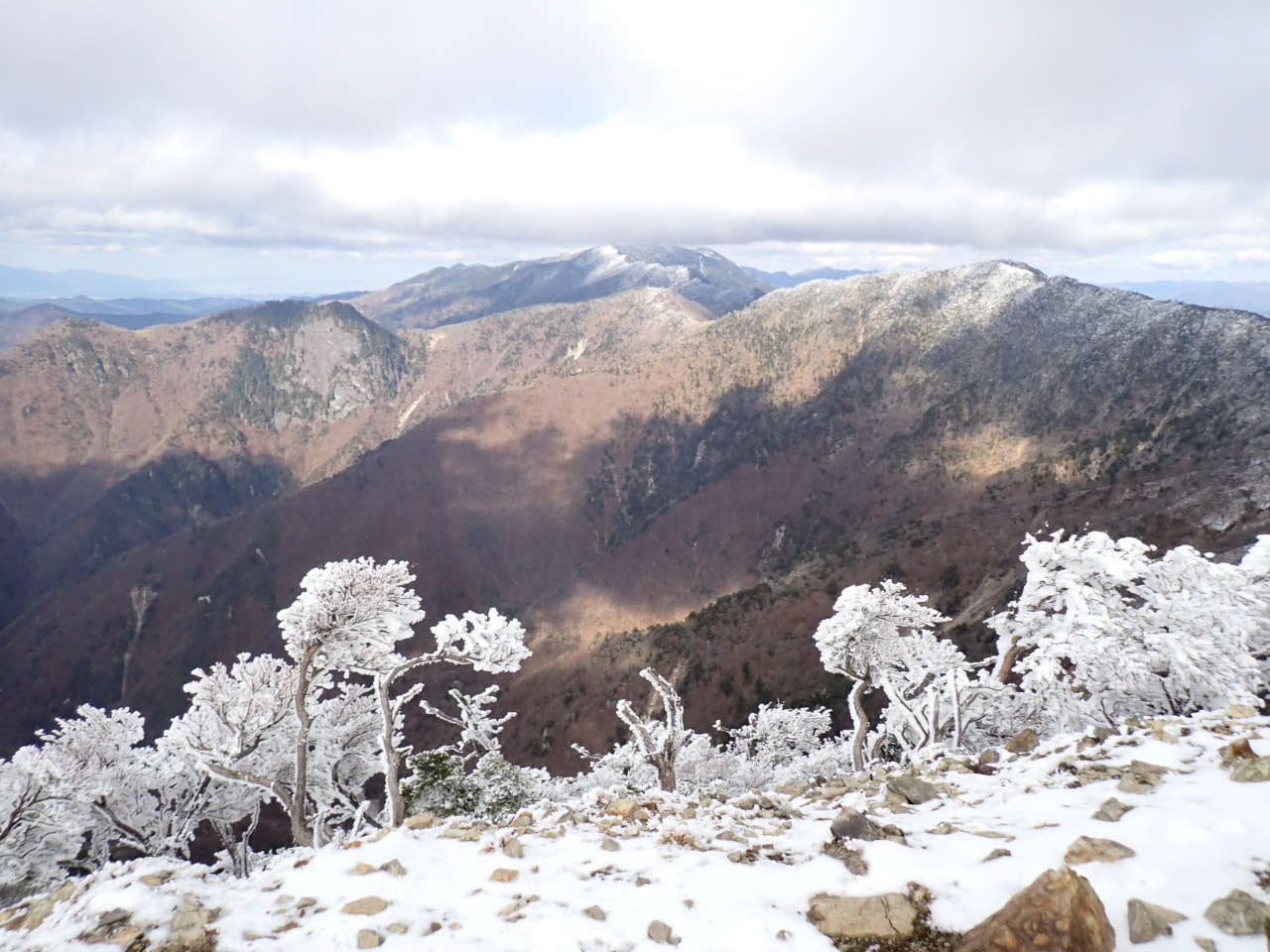 見渡せば明星から八経のあたりが雪化粧。