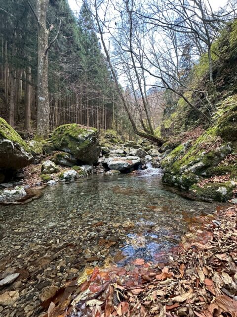 すぐ隣に川が流れ、夏に行った沢の風景を思い出しながら歩きました。