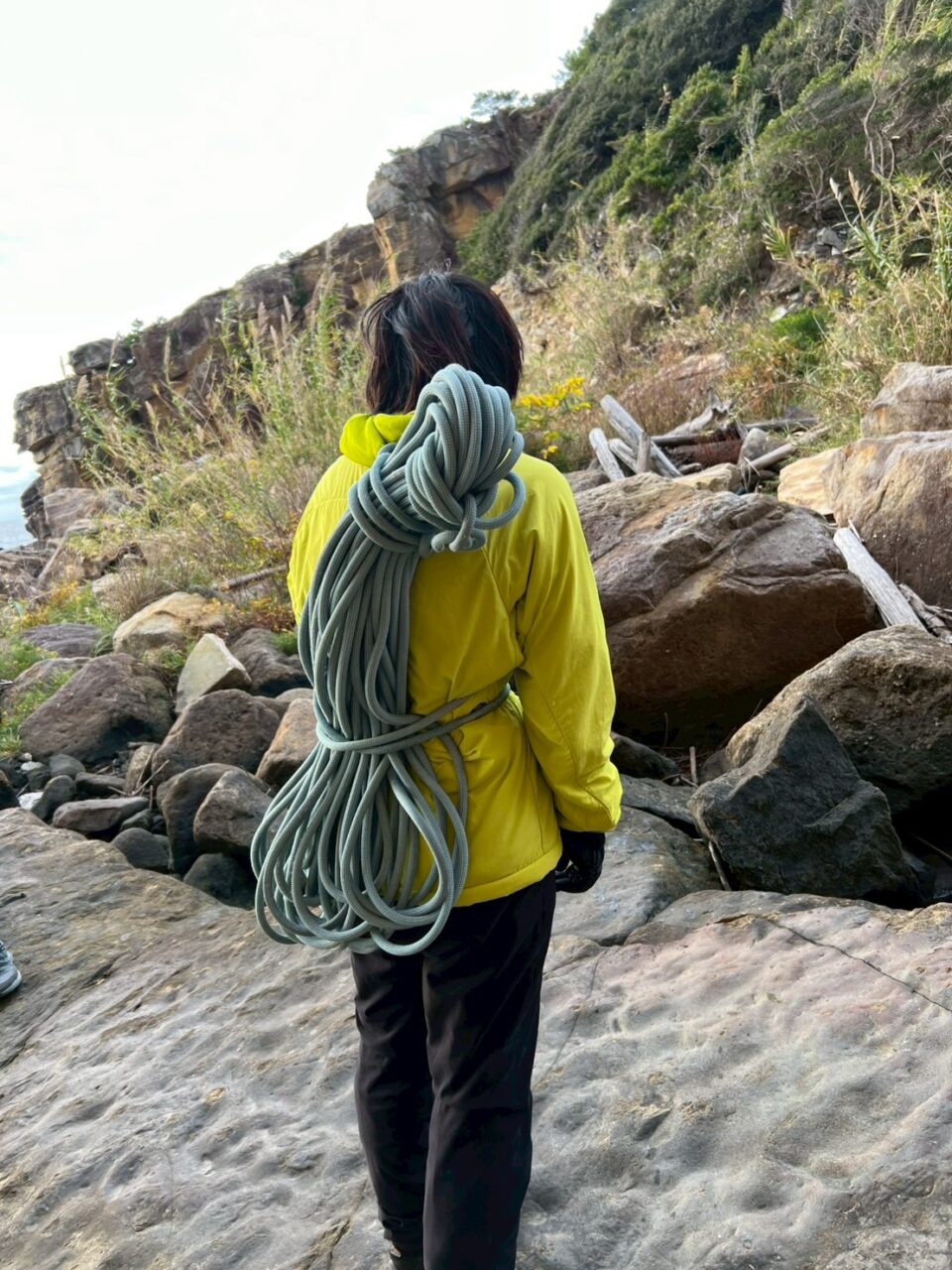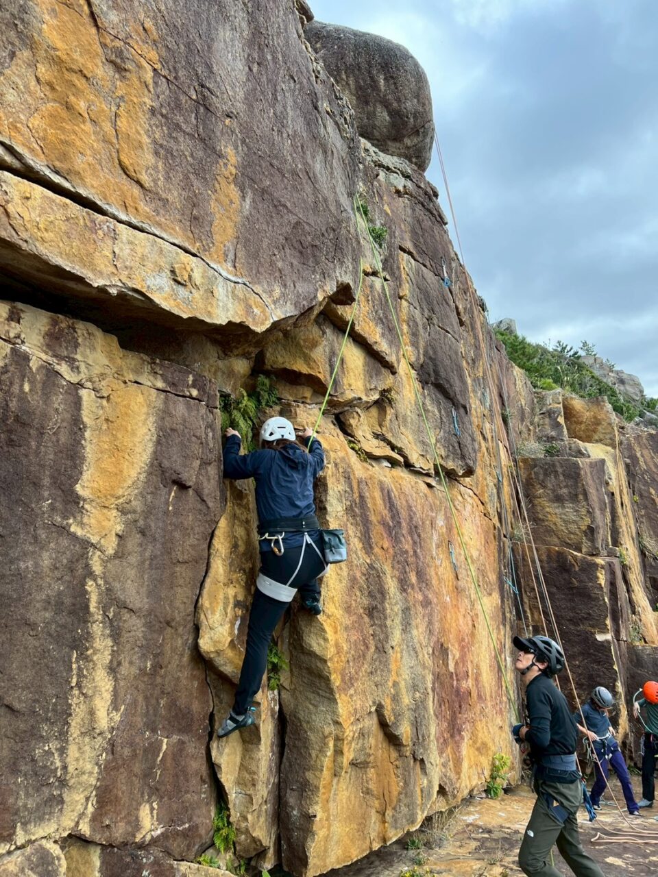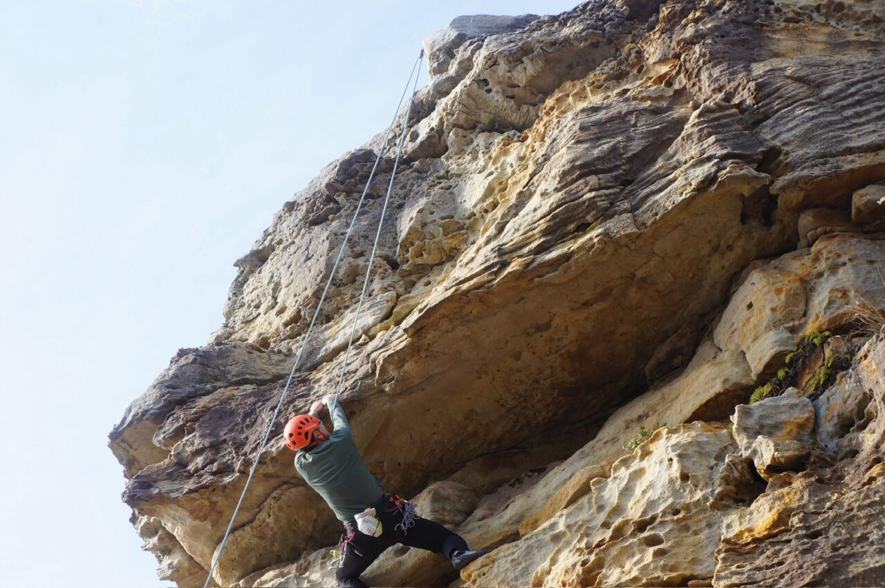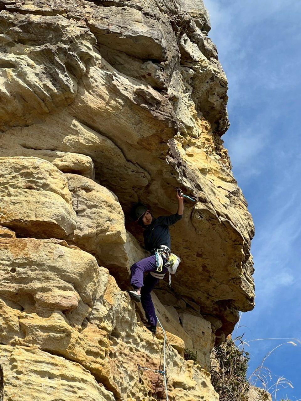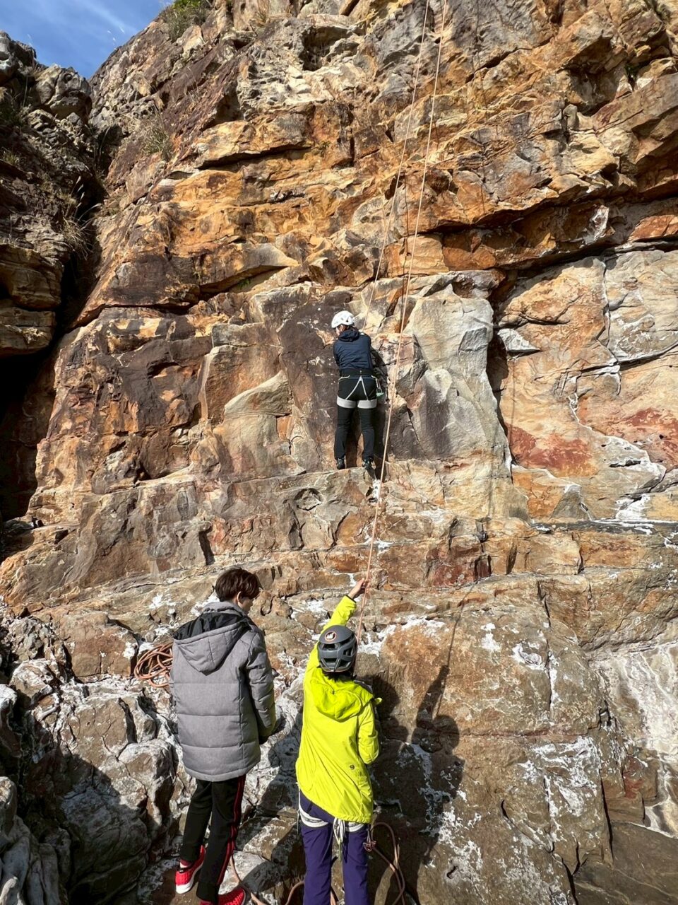 2週連続で外岩クライミングに来ました。入会したてのクライマーoさんにルートを教えてもらいながら、様々登りました。朝は意外にもポカポカで、楽しく登れて良かったです。各自課題にトライしていました。懸垂下降の支点構築などもoさんに教えてもらい、充実した練習ができました。