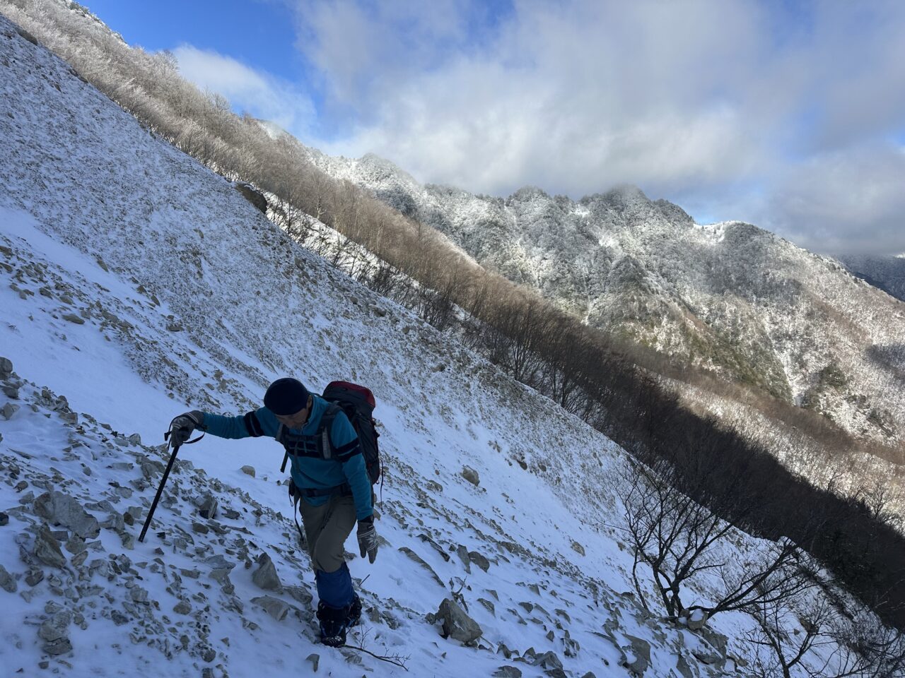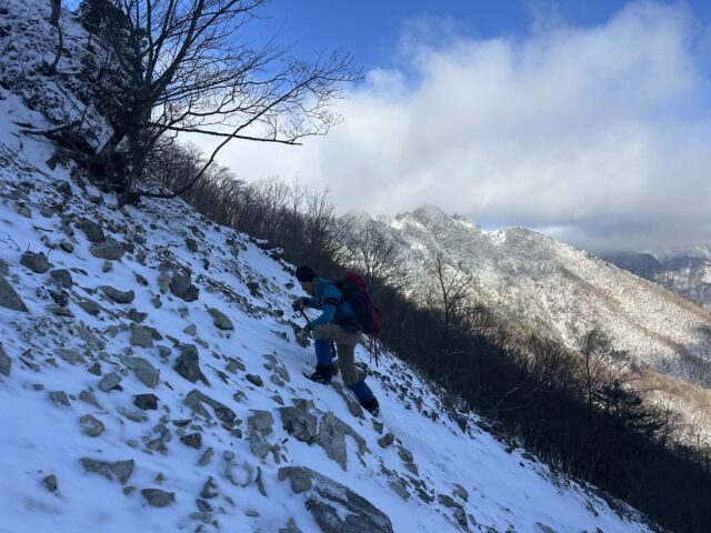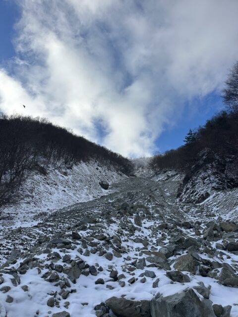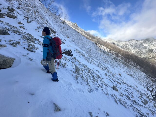 ドラゴンルートもサラサラの粉雪が少し乗っているだけでガレガレの石を止めるほどではなく歩きにくかった。もう少し雪が降って石が見えなくなったら楽しいかもしれない。