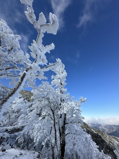 霧氷にえびのしっぽ 大峰ブルー