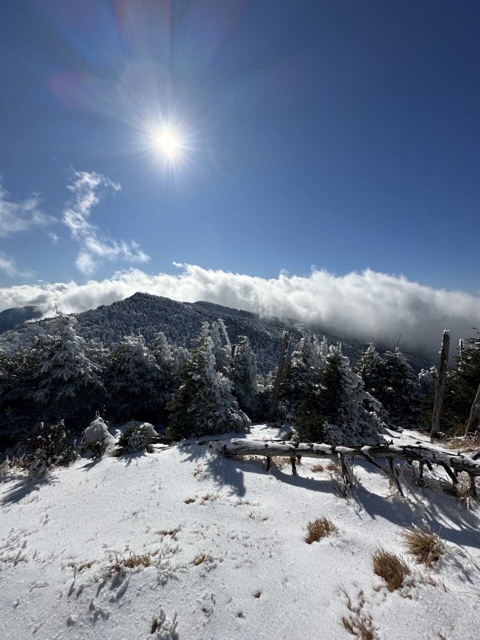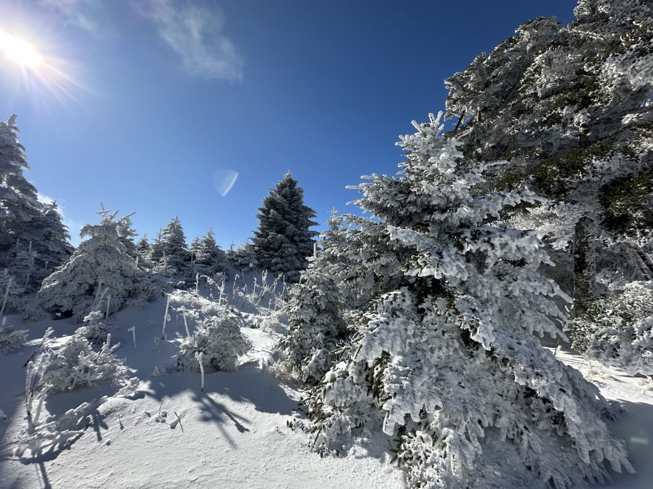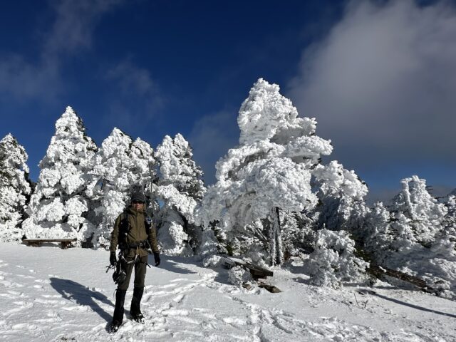 樹氷はきれいだが雪が少なすぎて どうも冬の気分になれない。
