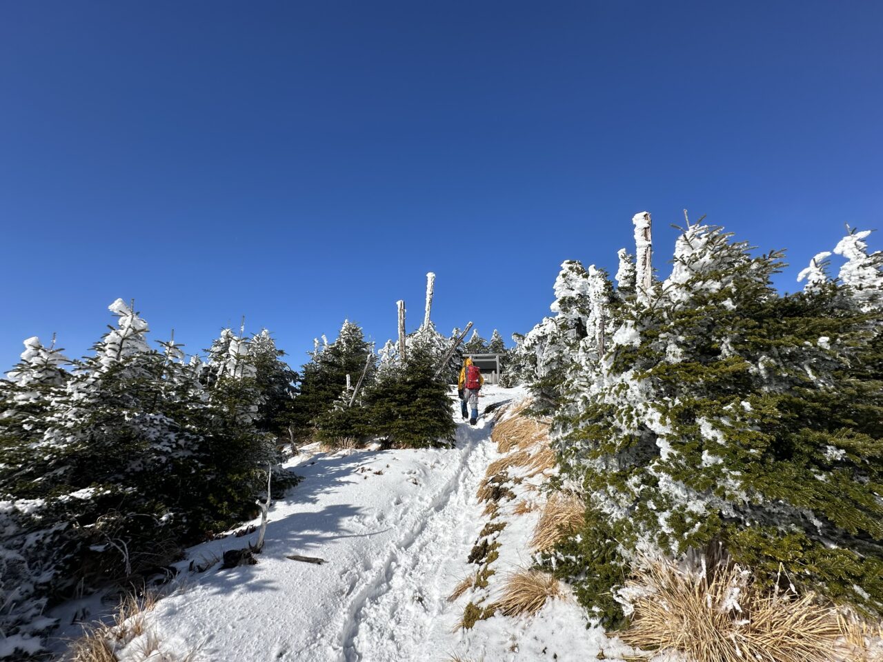 爪痕を登りきりトレースの無い静かな一般登山道に