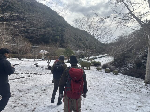 今年の初登りは御坊IC近くの大滝川森林公園の登山口付近の駐車場に車をとめ、真妻山へ。公園には少し雪が残っており、こんな光景は滅多にないようでわくわく。登山道へ入ってからも雪が続いており、よく真妻山へ来るメンバーも、まるで大峰かどこかの違う山へ来たようだと言うほど、普段とは違う光景みたいです。