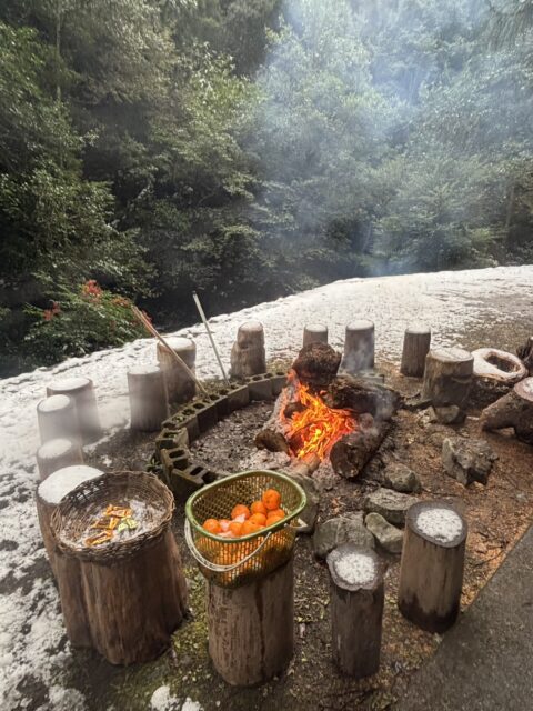 帰りは、境内のたき火で暖まりながら、‘‘和歌山あるあるのご自由にどうぞ’’の甘~いみかんを頂きました。そこから公園の駐車場へアスファトの道を30分ほど歩いておつかれ山。