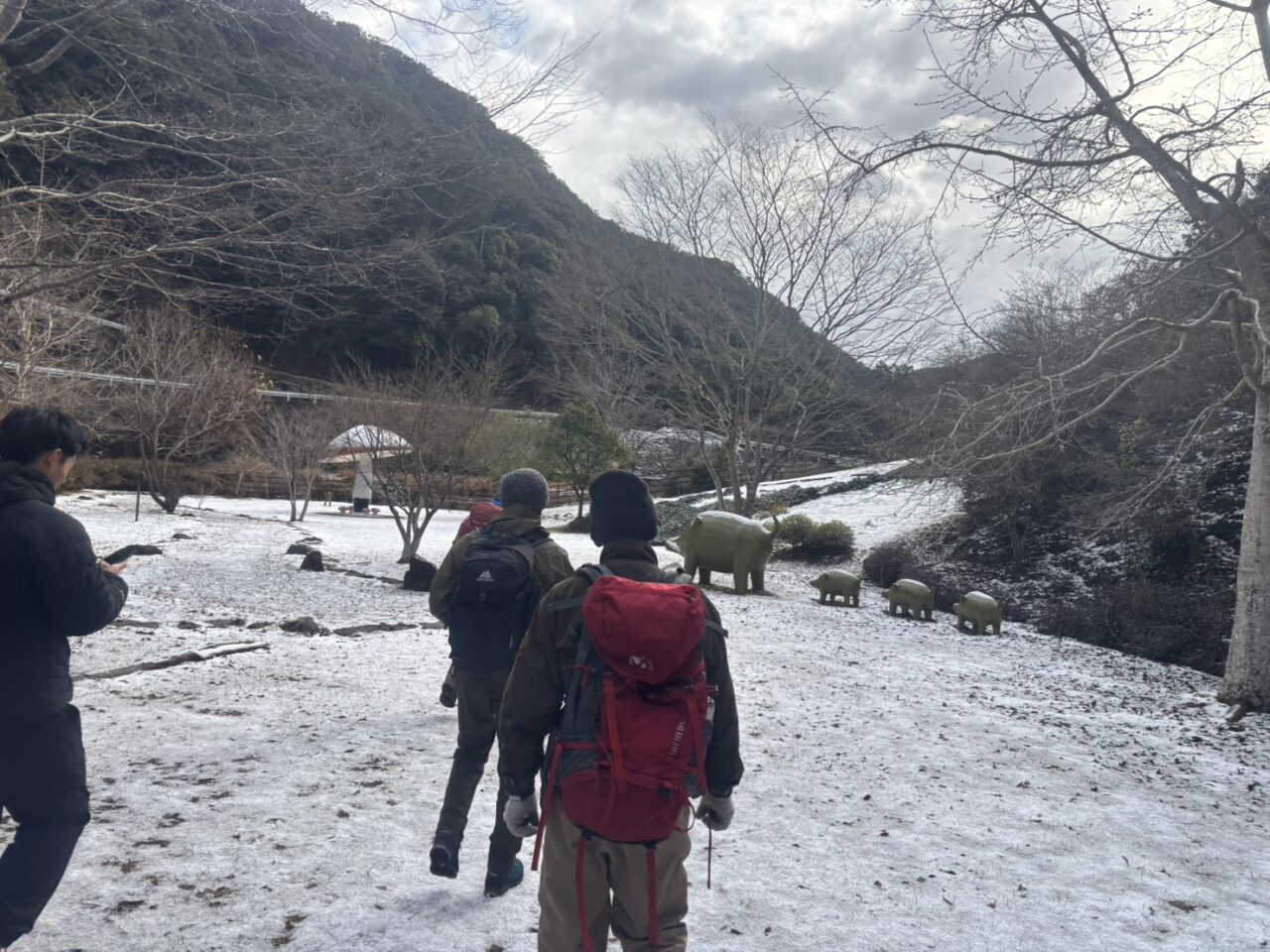 今年の初登りは御坊IC近くの大滝川森林公園の登山口付近の駐車場に車をとめ、真妻山へ。公園には少し雪が残っており、こんな光景は滅多にないようでわくわく。登山道へ入ってからも雪が続いており、よく真妻山へ来るメンバーも、まるで大峰かどこかの違う山へ来たようだと言うほど、普段とは違う光景みたいです。