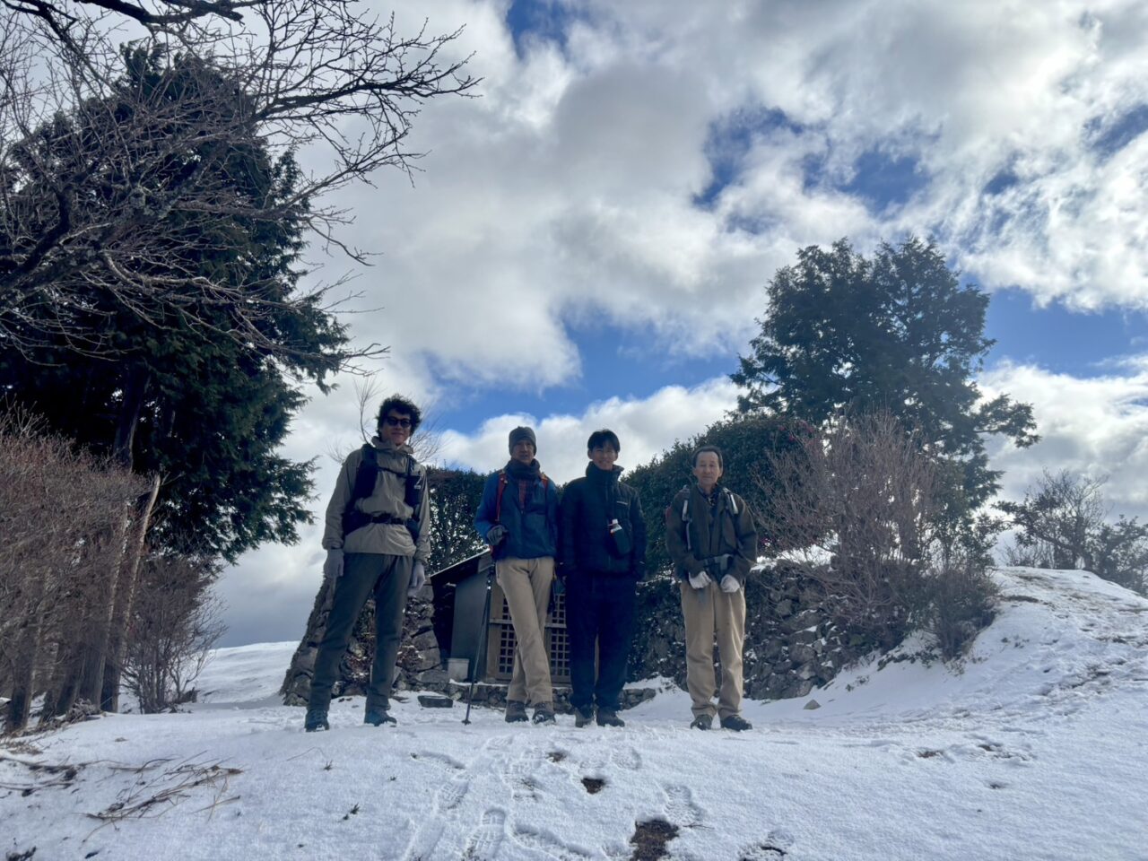 Sさんは信心深いほうで、よく御賽銭や御神酒をお供えするそうで、そんなご利益からか、雨が多い山道でも天候に恵まれる日が多いとか。私もありがたく御神酒に口をつけさせていただいて、正月らしい初登りをさせていただきました。