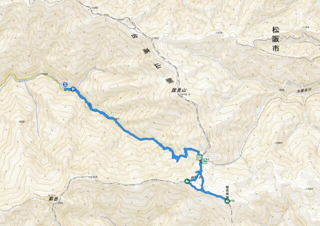 当初計画では、駐車場、明神平、明神岳、前山、薊岳東の1334m峰を経て、駐車場に戻る周遊ルートを考えていました。ただしこのプランの場合、1334mからの下りが急なため、安全を考えて逆回りにしようとなり、駐車場から1334mに上り始めました。しかし、やはりこのルートは急で危険なうえ、踏み後もなく8人という大人数であったことも考え、再度ルート変更、安全策をとり、明神平・明神岳・前山の往復プランとしました。結果的にこの変更はあたりでした。