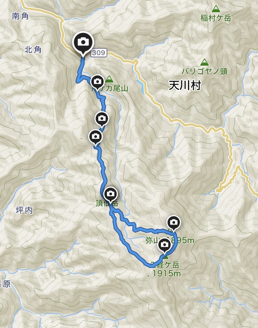 明星ヶ岳〜八経ケ岳〜弥山の行程で周回をしましたが、
