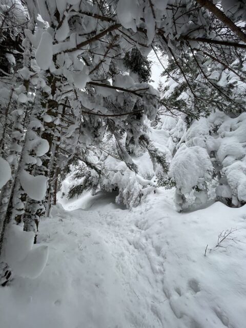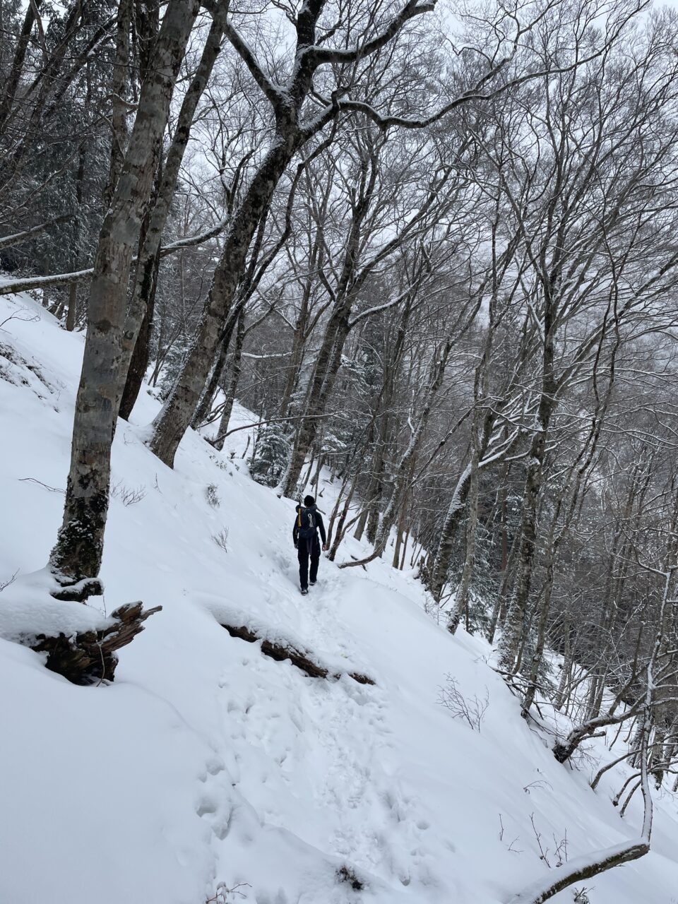 後半はトレースが消えたのか、この日は誰も通っていないのかちょいちょい道を見失いました。