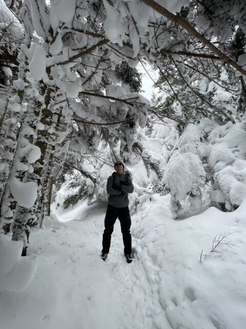 足を取られると胸の高さまで沈み込み、苦労しましたが、雪山に来た実感がさらに湧きました。