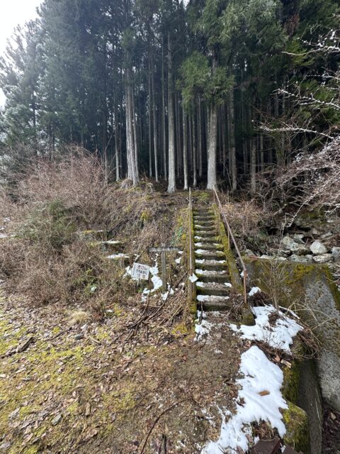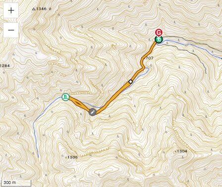 登山道から左にどことなく斜面を下って沢に