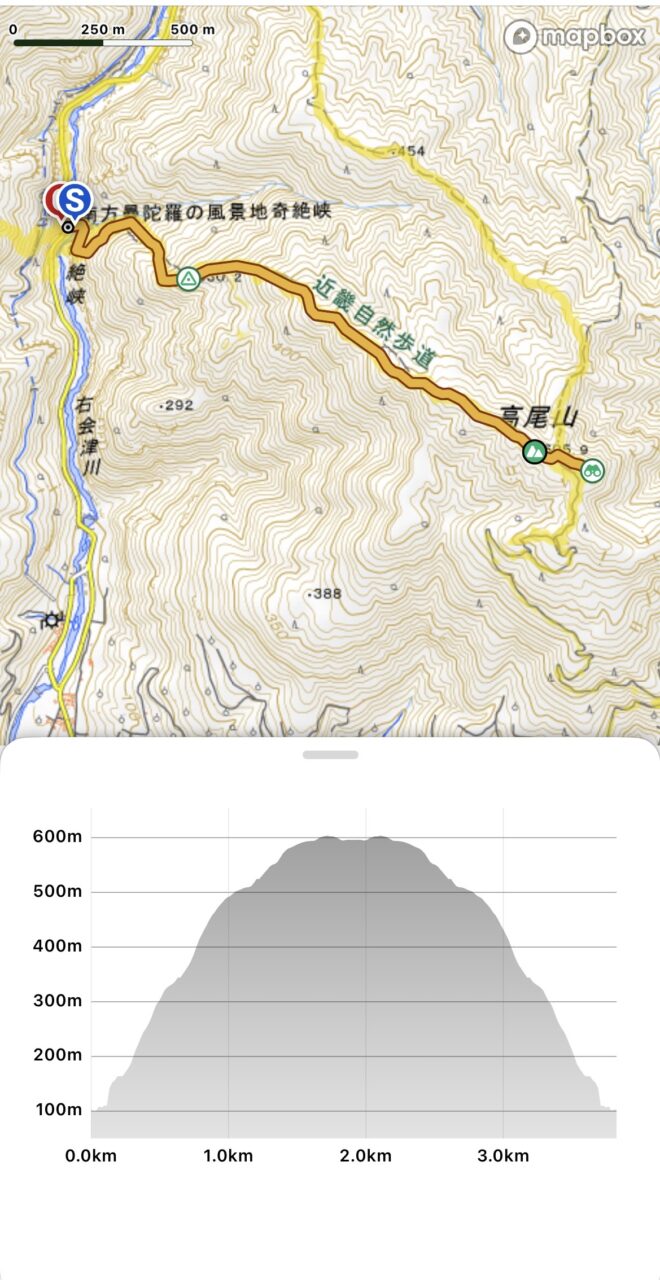 奇絶峡駐車場(9:00)〜三角点(9:30)〜高尾山(10:15)〜東展望台(10:20)※太鼓腹さんと別れる〜高尾山(10:30-55)※ティータイム〜奇絶峡駐車場(11:40)
