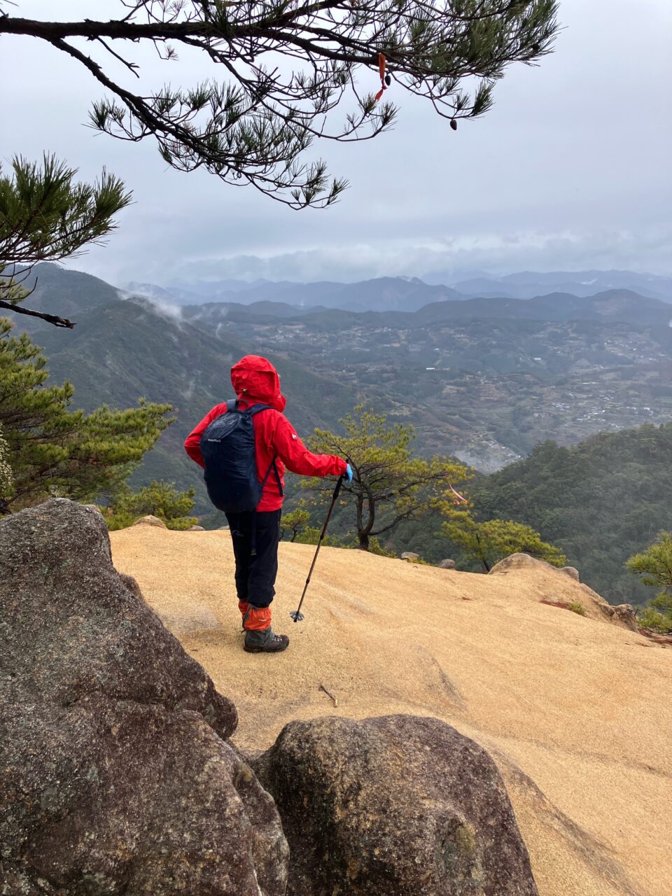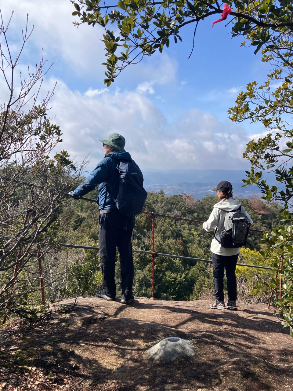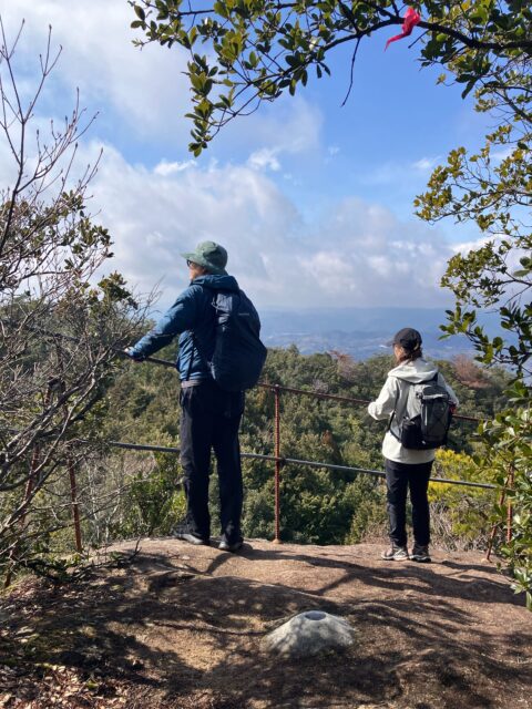 (くに記) tomoさん(CL)に田辺の高尾山を案内してもらいました。地元で親しまれている2-3時間の山ということで、簡単楽チンの名草山みたいなハイキングをイメージしていたら、思っていた3倍ほどの登り(おみそれしました!)…とはいえ後半はなだらかな道。東展望台の辺りは六甲の風吹岩のような素敵な光景で、人気があるのも納得のとっても良い山でした。