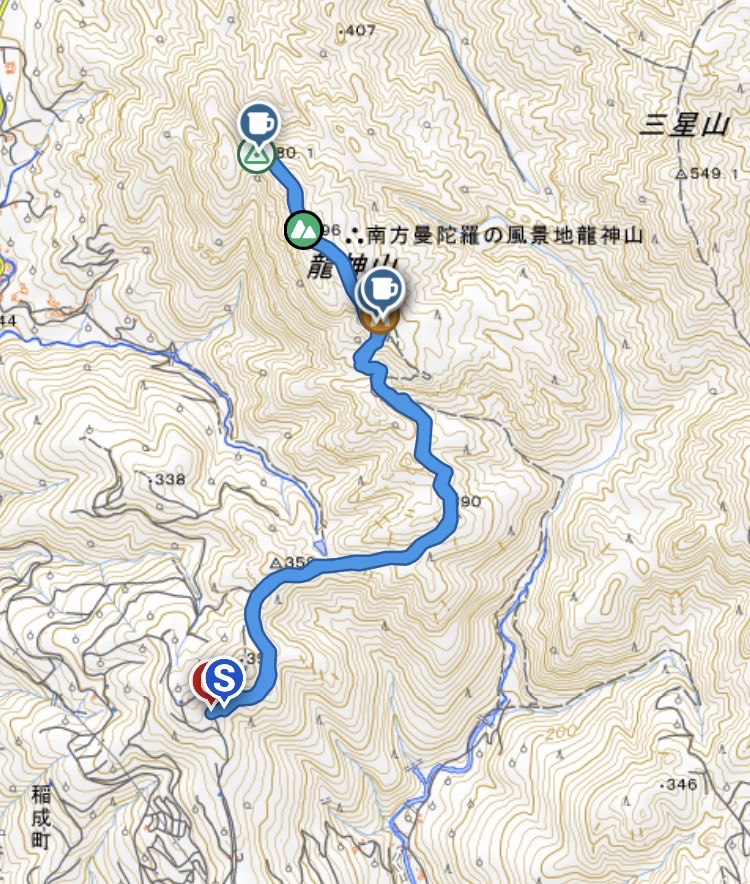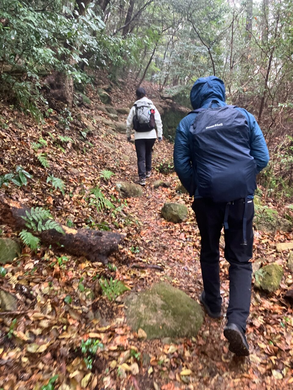 周回ルート希望の太鼓腹さんと山頂付近で別れ、午後から龍神宮のお餅撒きに行きたいtomoさんと私はピストンで下りるが、コーヒーブレイクが長すぎて、太鼓腹さんと下山は5分ほどしか変わらずw