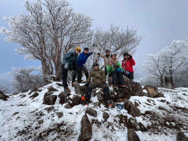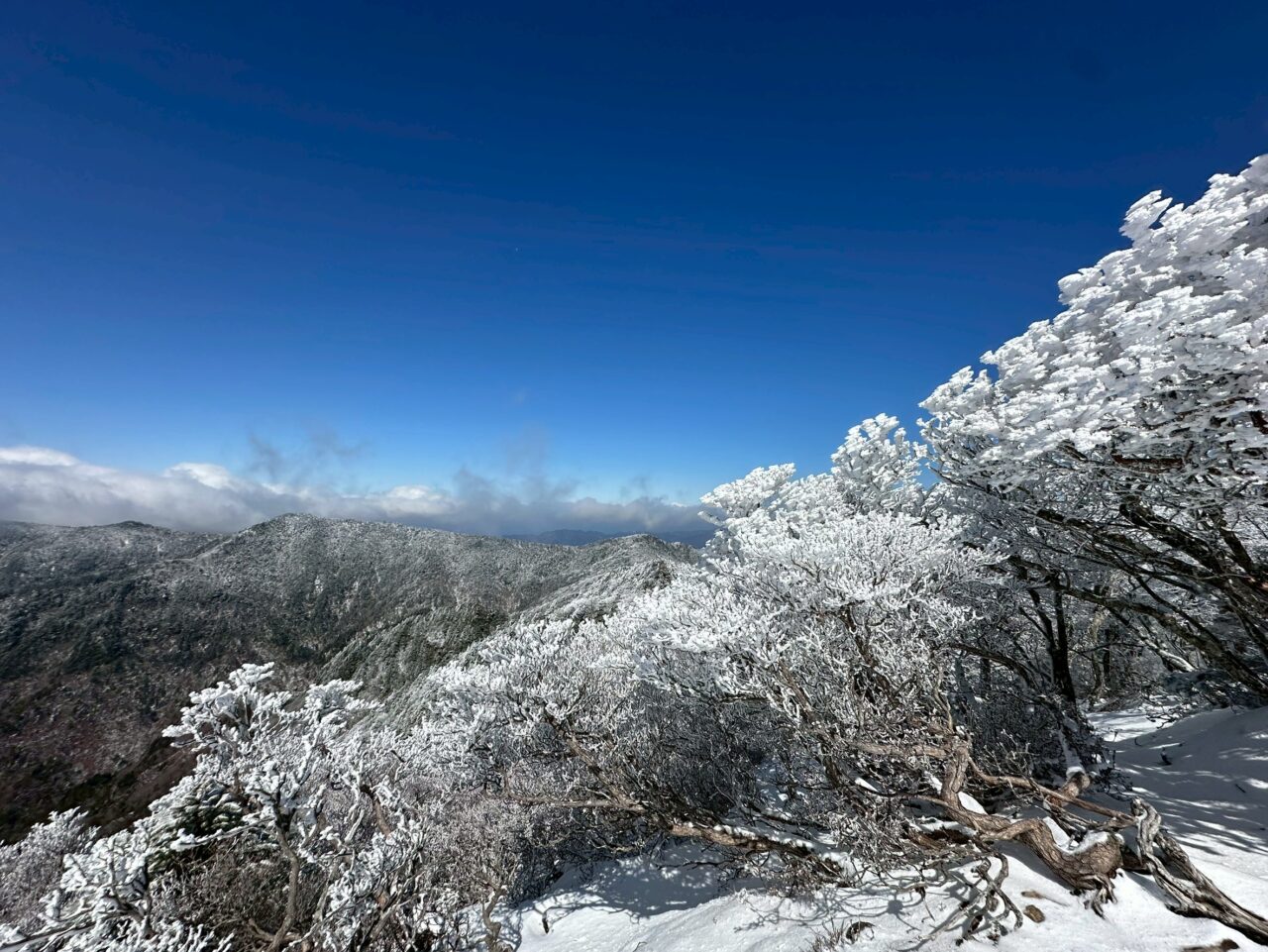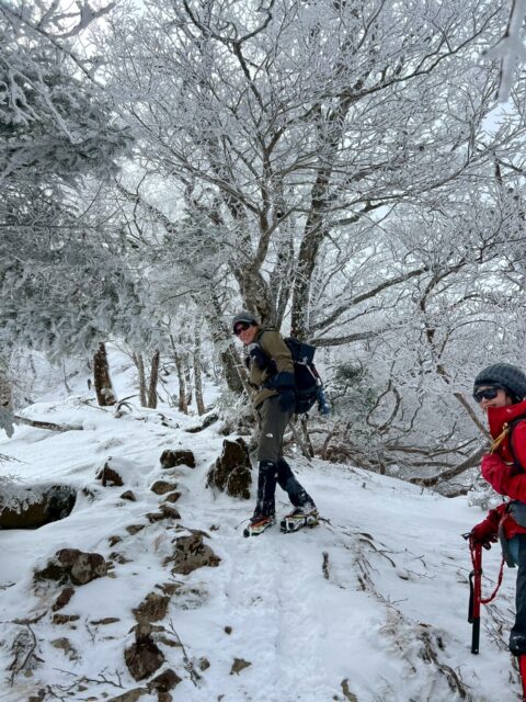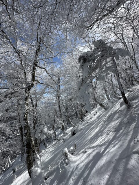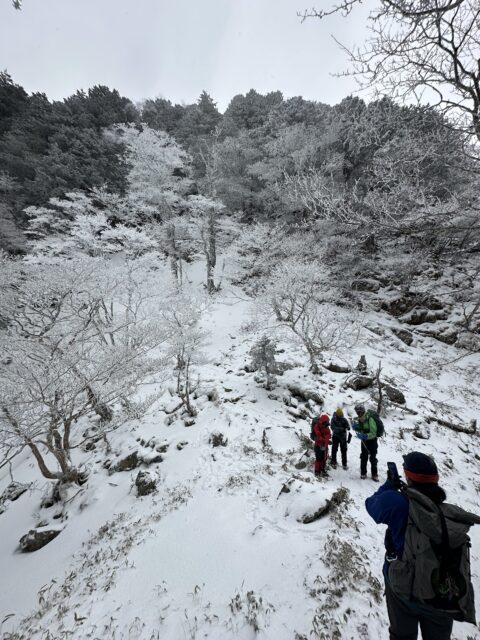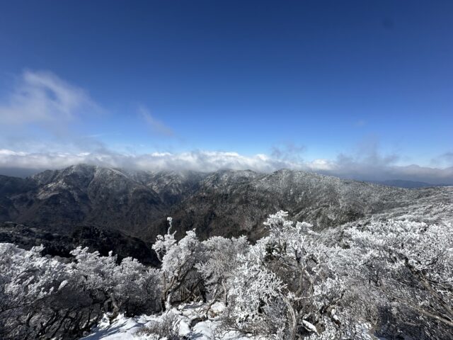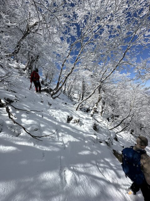 小普賢岳と大普賢岳のコルまで来ると霧氷祭り状態!
