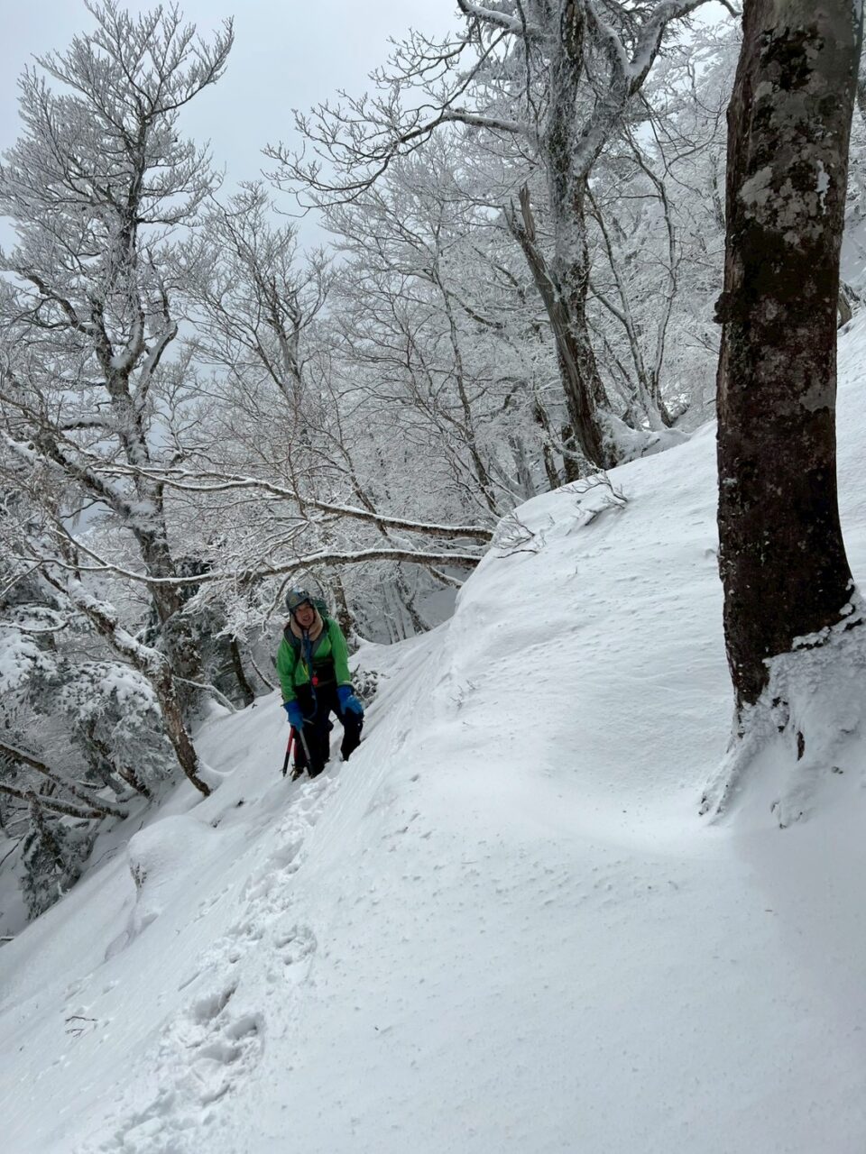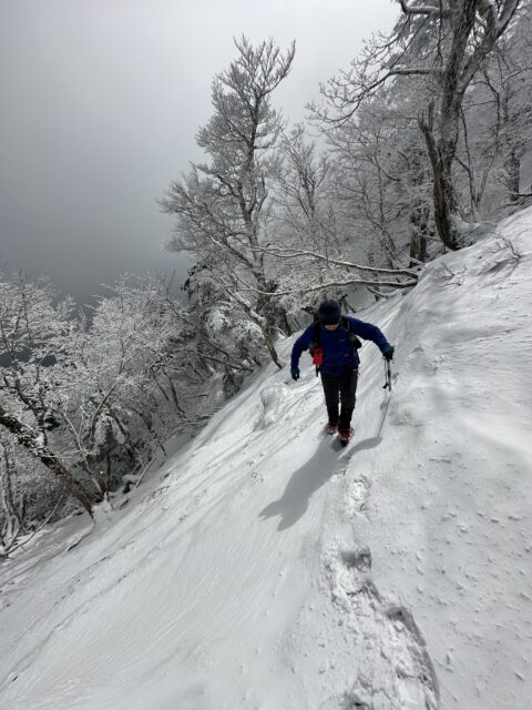 小普賢岳の右からのトラバースルートは厳冬期ではないの通過可能