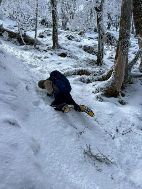 途中安全な斜面で滑落体験したりと