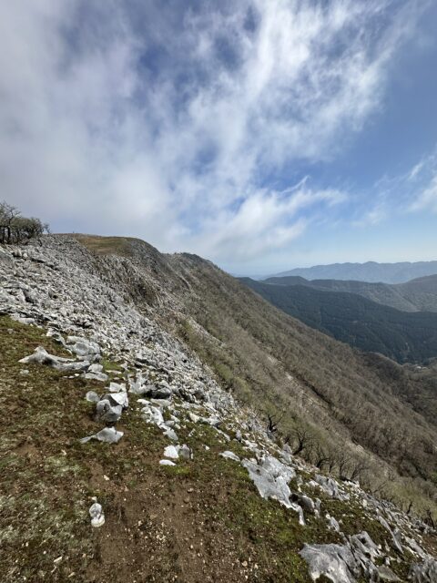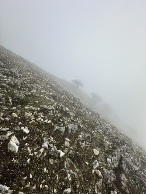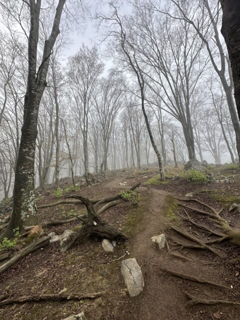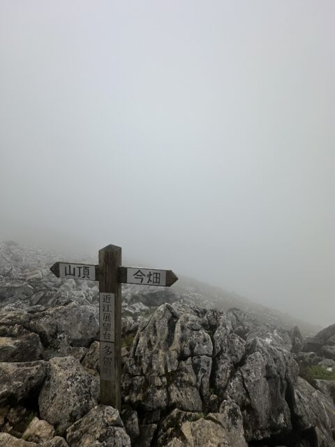 登山口からカルスト地形の急登まではガスの中の山歩き