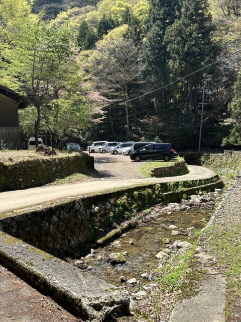 駐車場近くに沢水をホースで設置している水場があるので利用できます