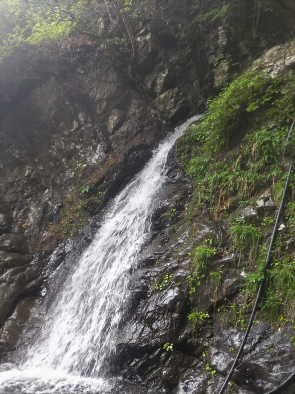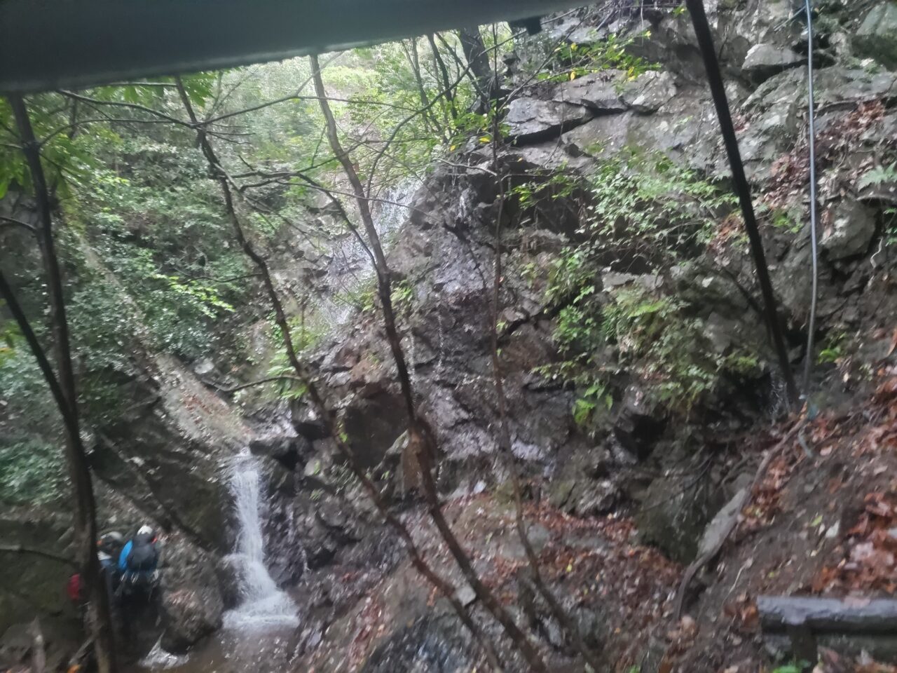 谷は左に曲がり、ナメ滝。ナメ部はツルツルでしたが、フリクションは利きました。乗り越しのワンポイントがボルダチックなムーブ(簡単)。