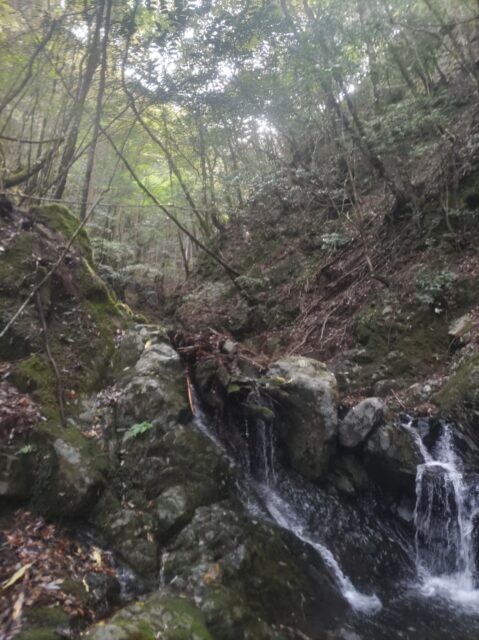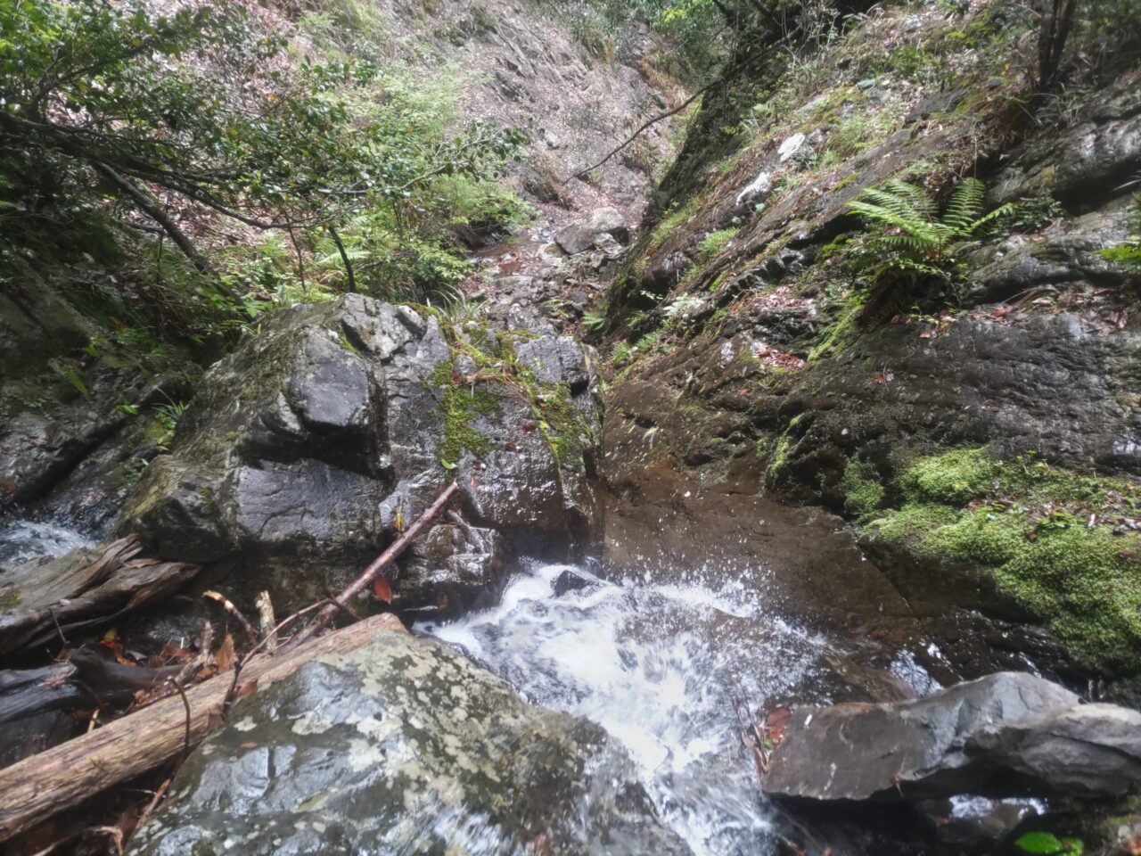 ここを越えたら、沢がようやく穏やかになり始めました。滝はありますが、両岸の傾斜が緩み、少なくとも巻ける地形になります。時間も押してきたので、4つほど斜瀑を巻きで越えると、難所は終了。