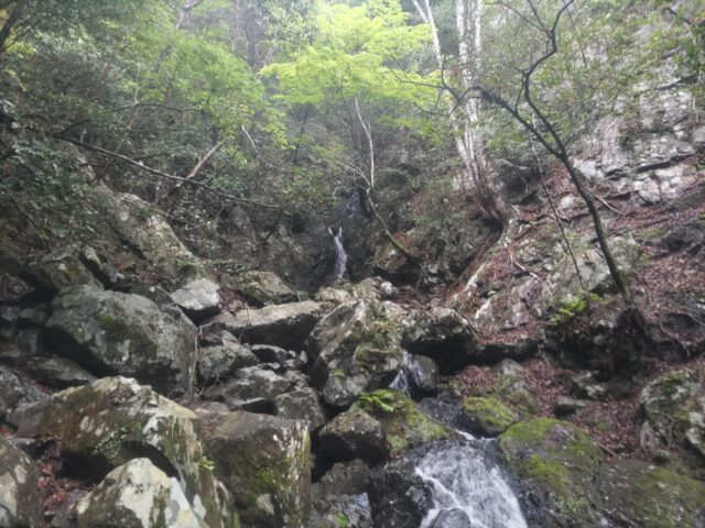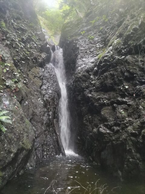右岸を上がると、30mほどで踏み跡薄い杣道に合流。最後はイバラが生えた階段で入渓点へ。遡渓8時間、下山30分が、谷の困難さを物語っていました。